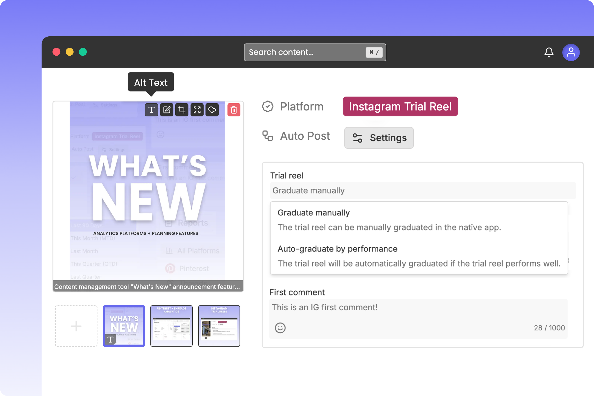 Graduates manually: Natively adjust when the reel expands to your audience after publishing.