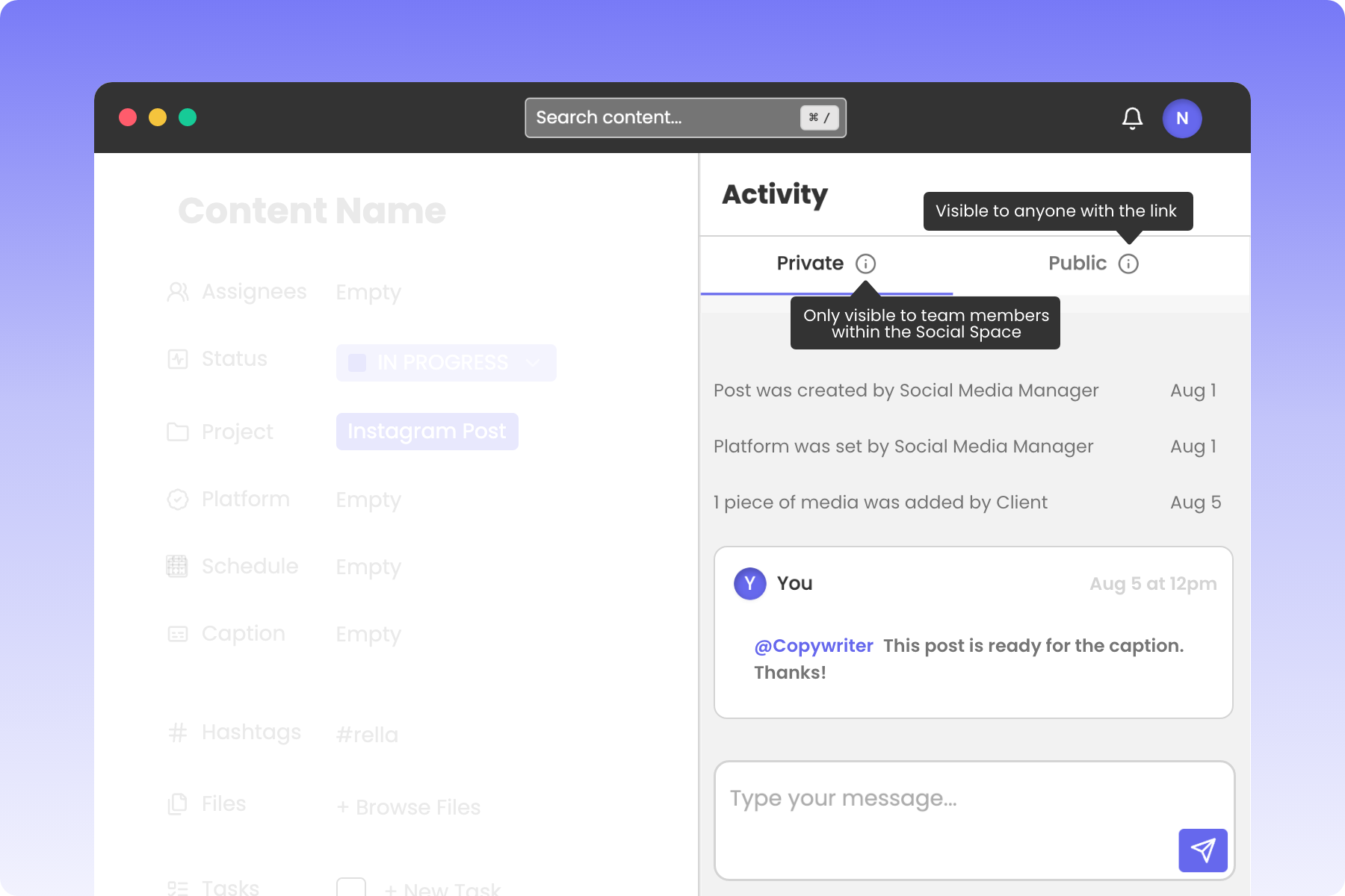 If you're trying to get content approvals your clients can add feedback and edits in just one click without even logging into Rella!