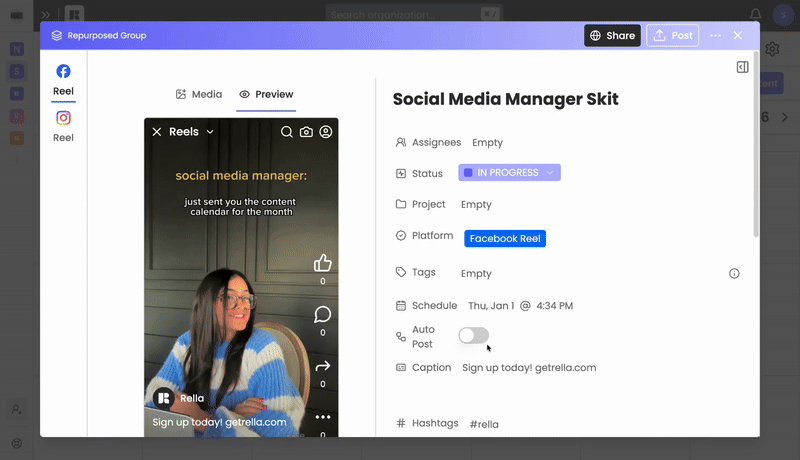 For example, if you only want content in the “Approved” status to auto post, content left in statuses like "Pending" or "In Progress" or "Revision" will remain unpublished until marked as “Approved".”