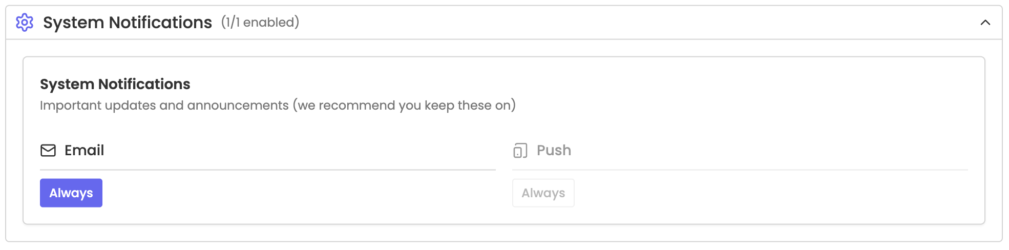 Or deselect Always to never receive notifications