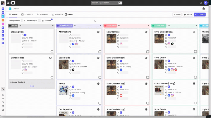 Each Project can manage its own board view, calendar, and media library. You can share an entire Project to receive feedback and approvals from clients.